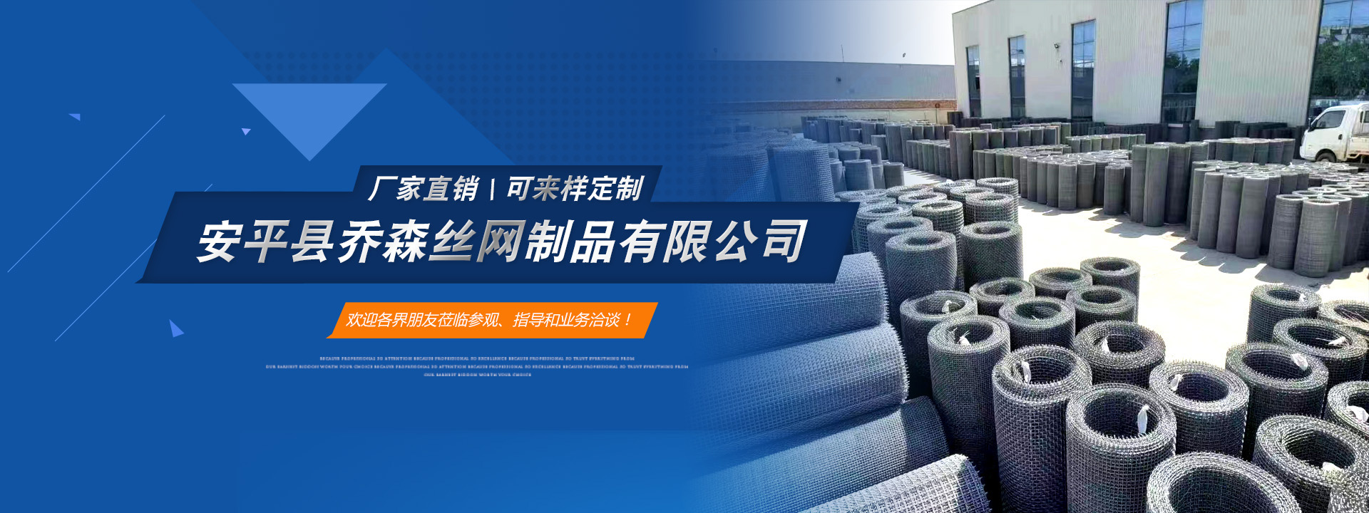 安平縣喬森絲網(wǎng)制品有限公司主營產(chǎn)品:篩網(wǎng)、金屬裝飾網(wǎng)、沖孔網(wǎng)板、防滑板和軋花網(wǎng)。常年現(xiàn)貨供應(yīng)45號黑鋼絲編織篩網(wǎng)、熱鍍鋅鋼絲篩網(wǎng)、304不銹鋼篩網(wǎng)和冷鍍鋅鐵絲網(wǎng),加工定做耐磨65號錳鋼絲篩網(wǎng)、菱形孔防堵篩網(wǎng)、養(yǎng)殖用長方孔鐵絲網(wǎng)、金屬裝飾網(wǎng)、盤條